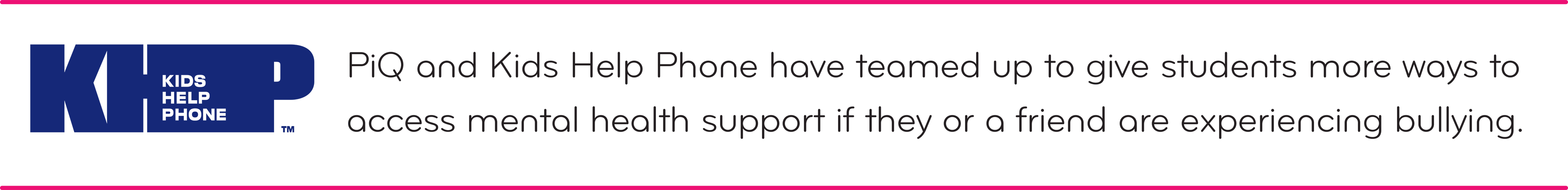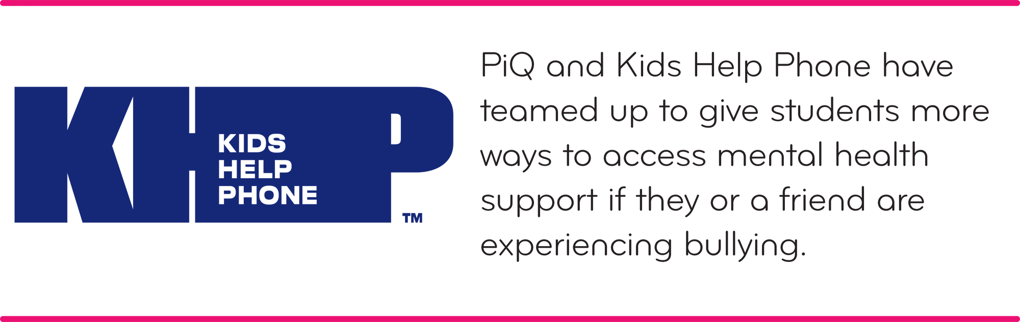 A: PiQ and Kids Help Phone have teamed up to give students more ways to reach mental health support.