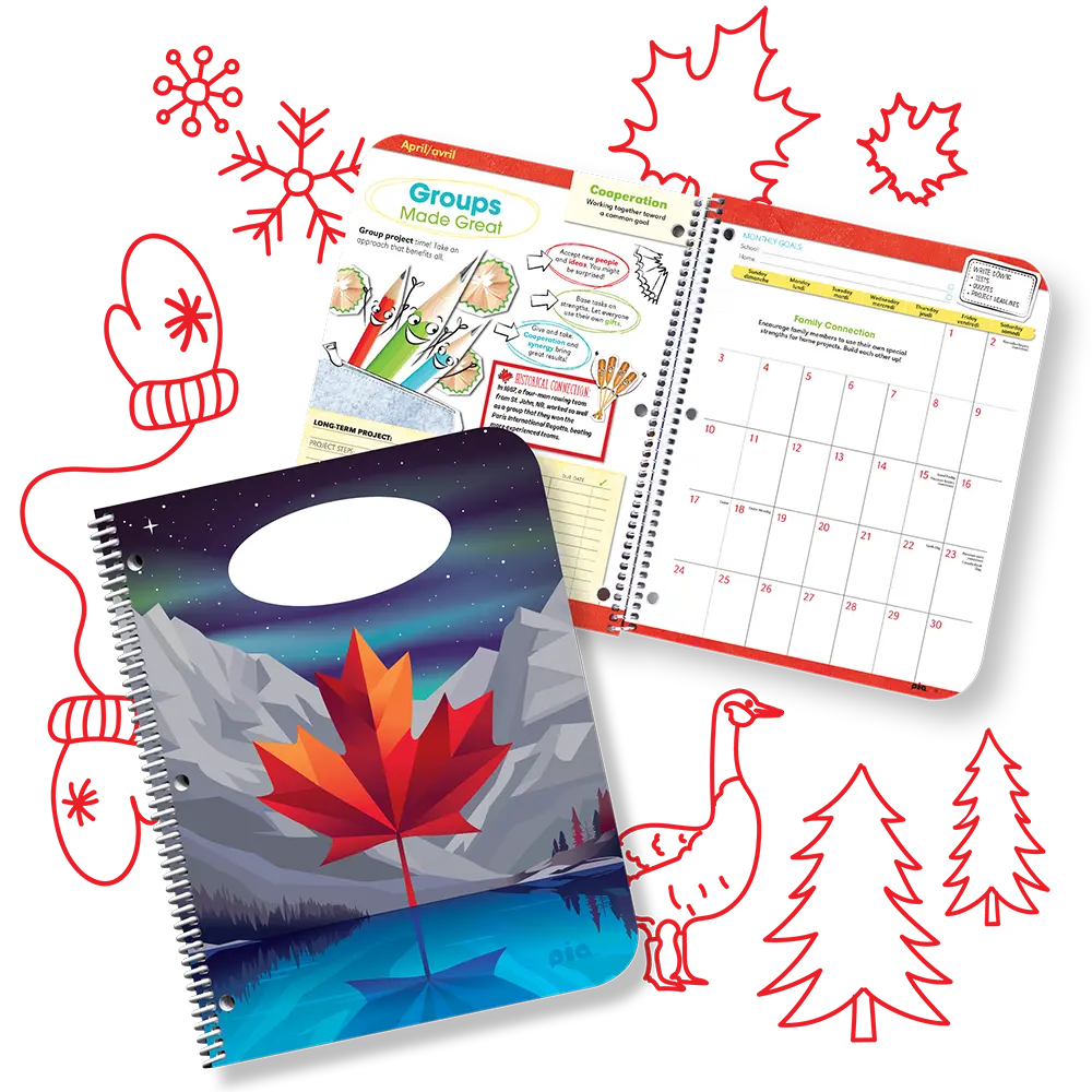 Fun facts and interactive activities celebrate Canadian innovation and creativity, keeping students curious, inspired, and motivated to plan their days with pride.